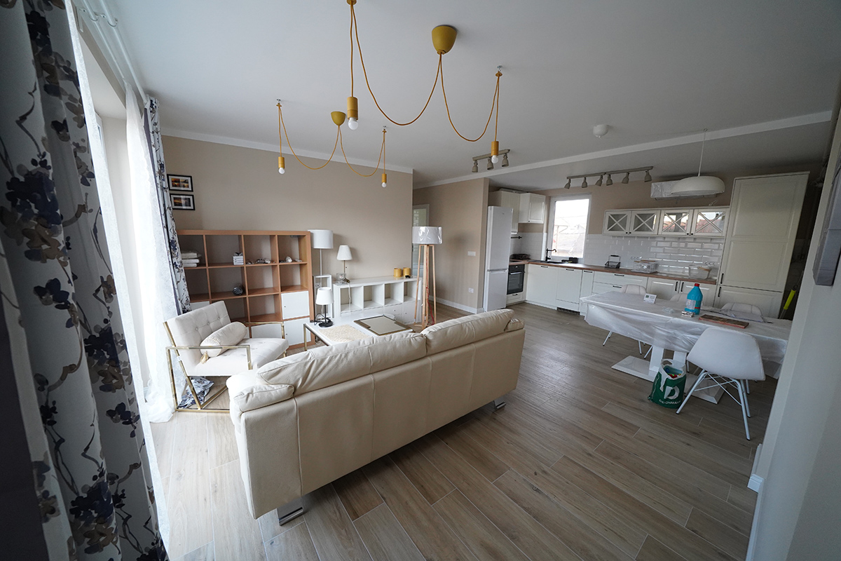 Apartamentul este făcut cu materiale de cea mai bună calitate și cu grijă la detalii, la decorațiunile interioare și la design. Mobilierul, covoarele, echipamentele sunt alese cu atenție, astfel încât elementele de decor să formeze un tot unitar ca stil, iar interiorul să emane bun gust, căldură și intimitate. Mobilierul, electrocasnicele și dotările sunt gândite unitar, iar ochiul e plăcut impresionat de textura, culoarea și forma fiecărei piese, în parte. Apartamentul ar trebui să răspundă celor mai înalte pretenții.